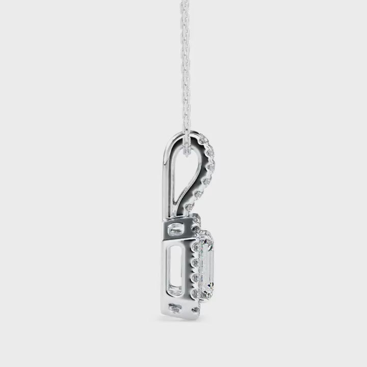 Emerald cut halo Lab Diamond pendant