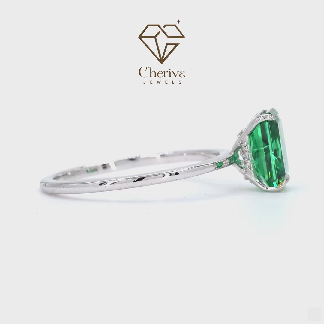 Green Emerald Cut Gemstone Solitaire Engagement Ring